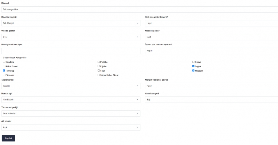 Blok sistemi sayesinde sitenin ana sayfa yapısını tamamen kendiniz belirlersiniz. Blok içerikleri, kendi iç tasarımları gibi detaylar konusunda tüm kararları siz verirsiniz. Mesela manşet tasarımı için;